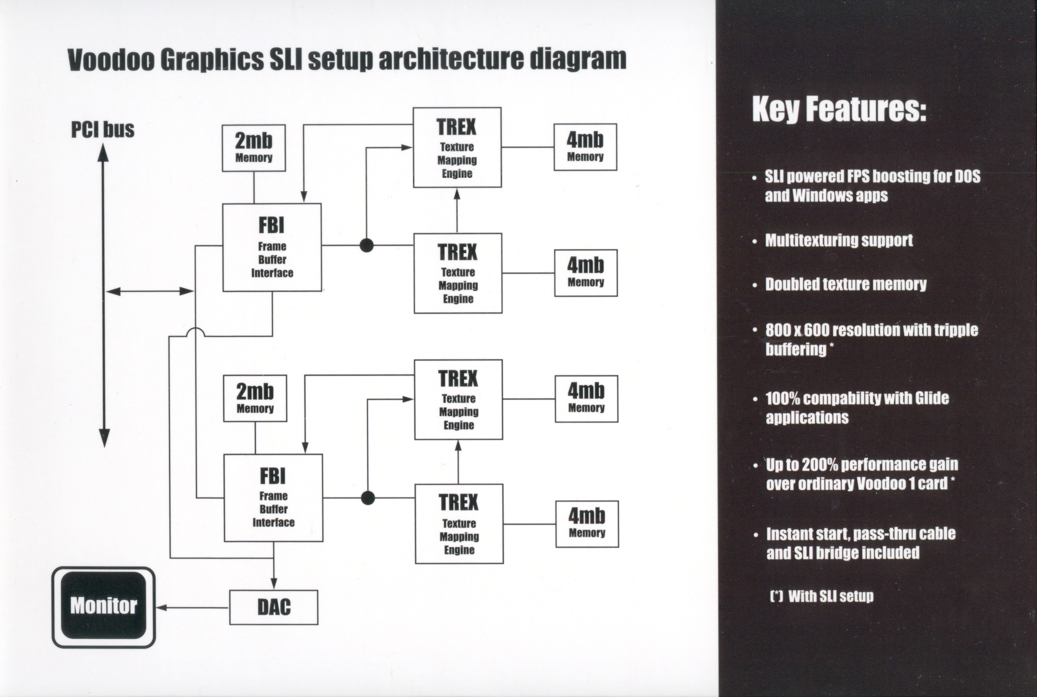 Note: Modern replica of Quantum3D Obsidian 50 2440. There are two cards - Master and Slave, that can be connected to SLI mode. In SLI 800×600 resolution is possible.
