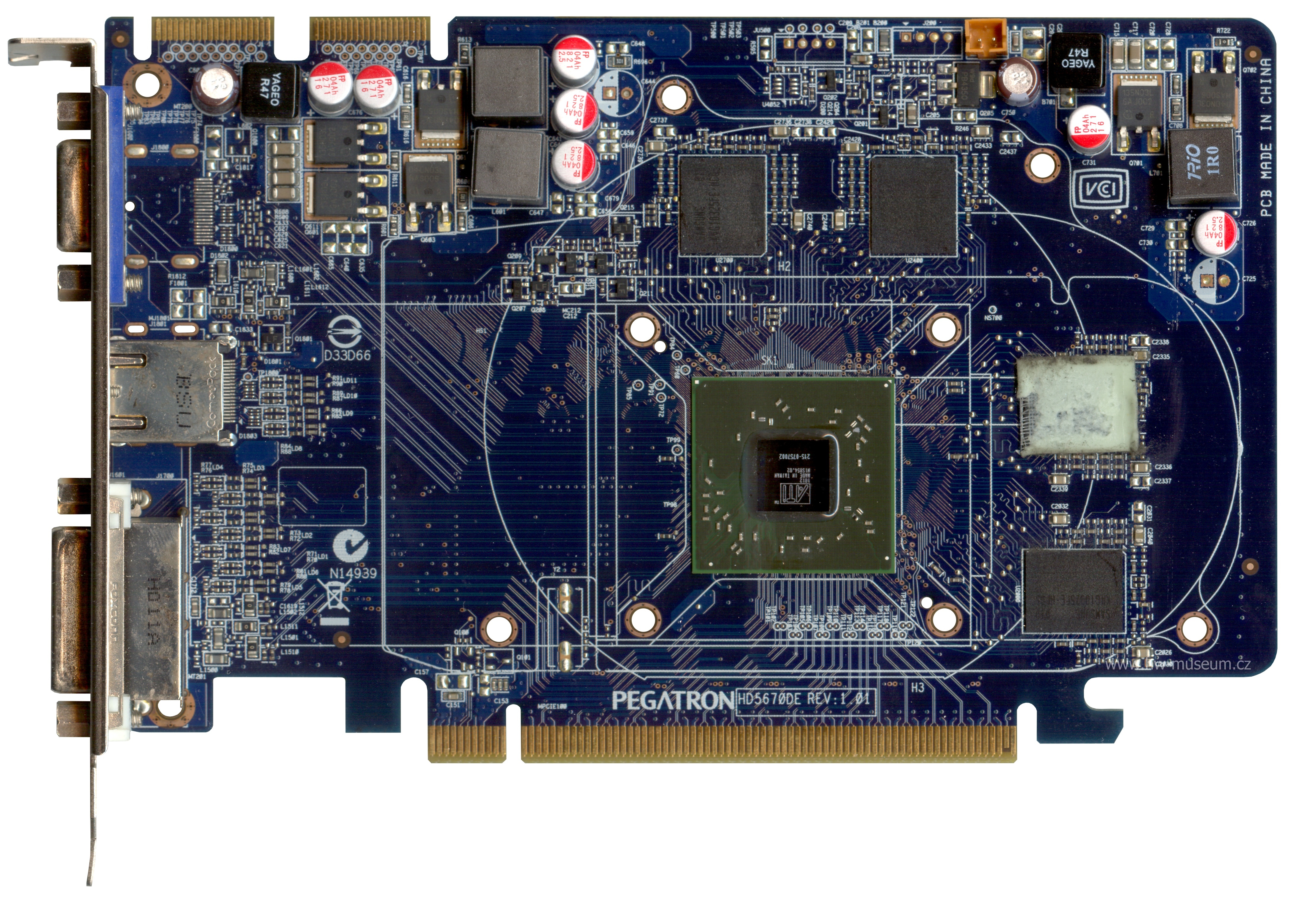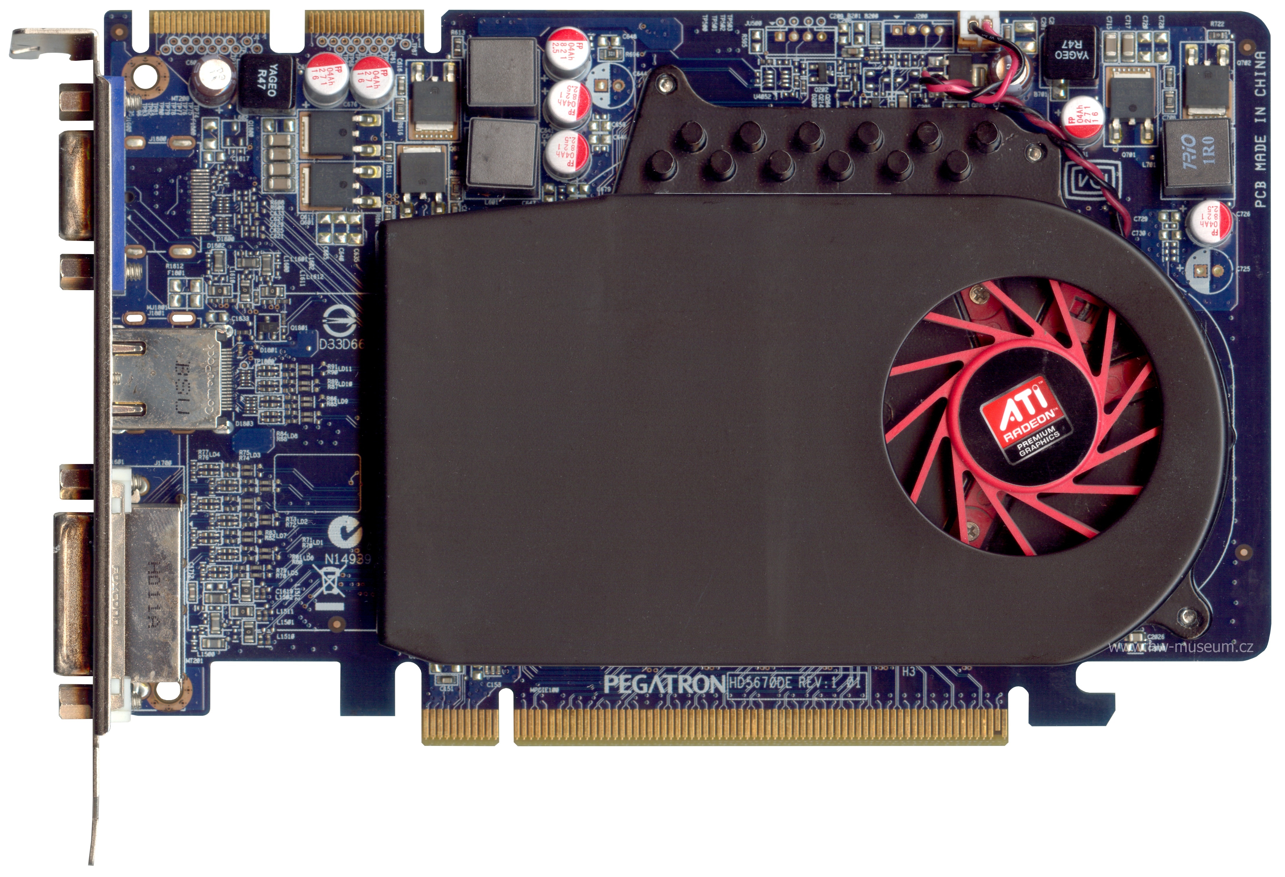 Pegatron Radeon HD 5670 Published: 5th December 2018 (last update 5th December 2018 ) Compare to fastest reference Redwood board Add to compare GPU GPU type Redwood Manufacturing process40 nm Transistors627 million Die size104 mm2 Density6.03 M / mm2 ROPs8 TMUs20 Pixel shaders- Vertex shaders- Unified shaders400 Clock775 MHz Pixel fillrate6 200 MP/s Texel fillrate15 500 MT/s SP gigaflops620 DP gigaflops- DirectX11 OpenGL4.5 OpenCL / Compute ver.1.2 / - Memory Capacity1 024 MB TypeGDDR5 Clock4 000 MHz Bus width128 bit Bandwith64 000 MB/s Rated speed4 000 MHz BrandSamsung The card ManufacturerPegatron InterfacePCI-E 2.0 x16 Interface bandwith8 192 MB/s TDP64 W Analog I/O ports1 × VGA, 1 × DVI-I Digital I/O ports1 × DVI-I, 1 × HDMI Independent screens2 Manufacture date- Release date2010 Pegatron Radeon HD 5670 (front side) Pegatron Radeon HD 5670 (back side) Redwood GPU Pegatron Radeon HD 5670 Sapphire Radeon HD 5550 GDDR5 TeraScale 2 architecture Pegatron Radeon HD 5670 ATi Radeon HD 5970 Sapphire Radeon HD 5770 Pegatron Radeon HD 5670 gallery Pegatron Radeon HD 5670 gallery
