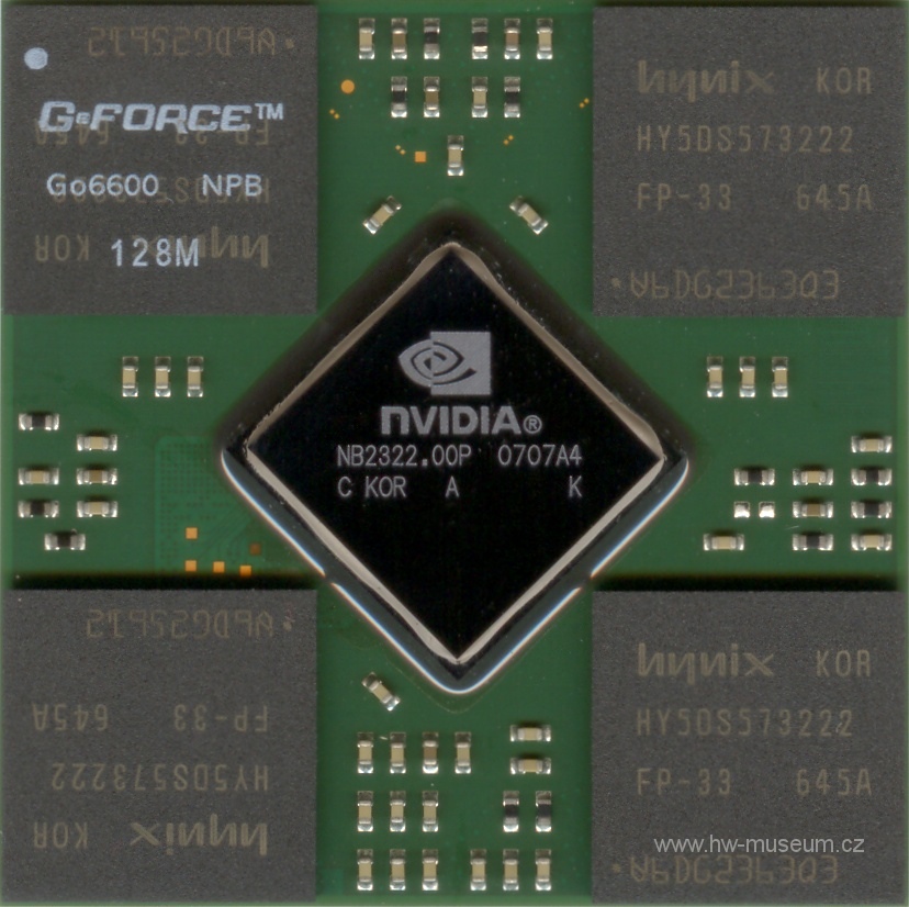 Note: MCM package with NV43 GPU and four Hynix DDR chips.