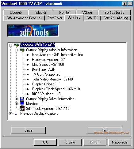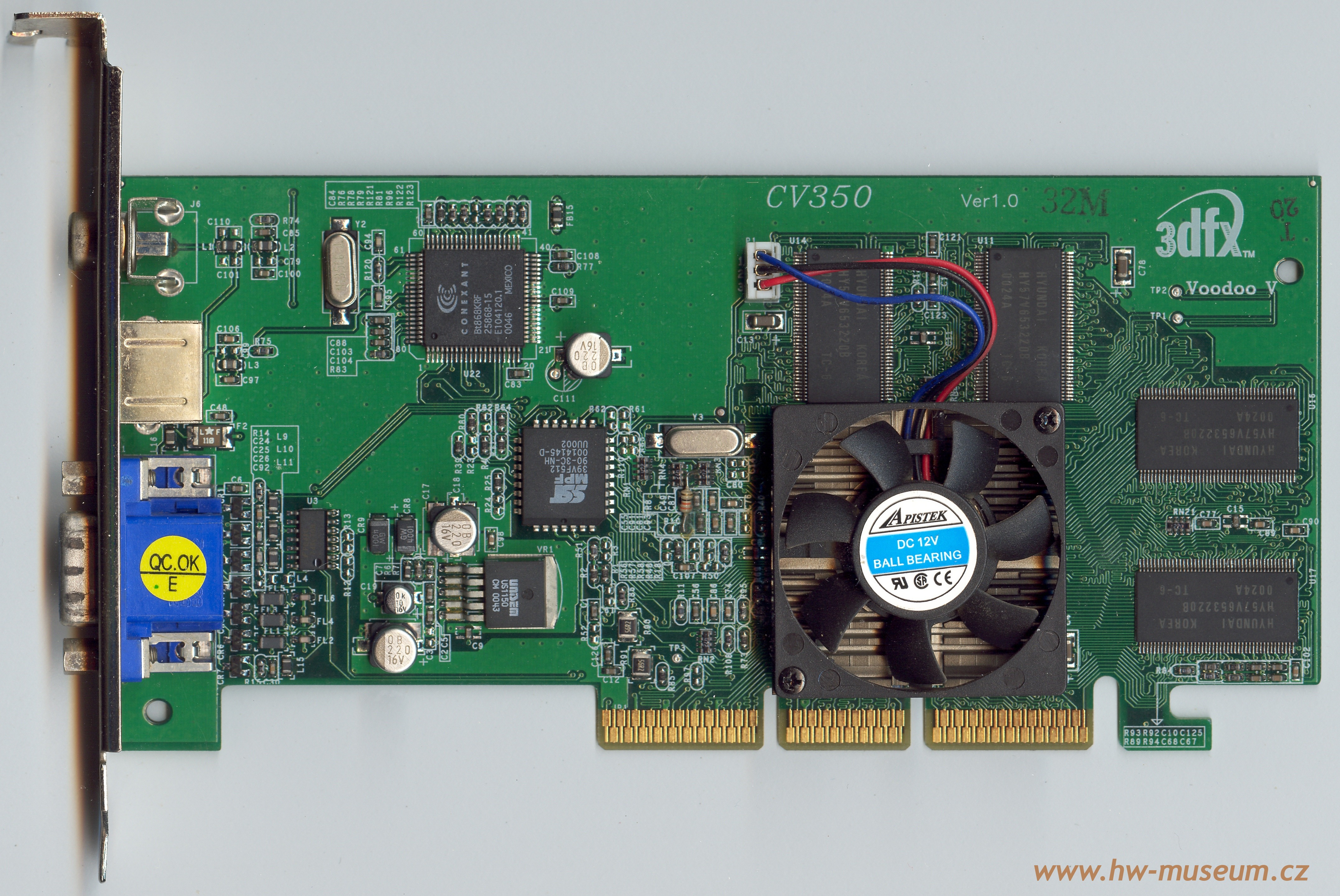 PowerColor EvilKing IV TV Published: 18th October 2013 (last update 29th December 2016 ) Compare to fastest reference VSA-100 board Add to compare GPU GPU type VSA-100 Manufacturing process250 nm Transistors14 million Die size112 mm2 Density0.12 M / mm2 ROPs2 TMUs2 Pixel shaders- Vertex shaders- Unified shaders- Clock166 MHz Pixel fillrate332 MP/s Texel fillrate332 MT/s SP gigaflops- DP gigaflops- DirectX7 OpenGL1.1 OpenCL / Compute ver.- Memory Capacity32 MB TypeSDRAM Clock166 MHz Bus width128 bit Bandwith2 656 MB/s Rated speed166 MHz BrandHyundai The card ManufacturerPowerColor InterfaceAGP 2x Interface bandwith533 MB/s TDP15 W Analog I/O ports1 × VGA, 1 × Composite out, 1 × S-Video out Digital I/O ports- Independent screens1 Manufacture date51st week of 2000 Release date2000 PowerColor EvilKing IV TV (front side) PowerColor EvilKing IV TV (back side) VSA-100 GPU 3dfx Voodoo4 4500 AGP rev. 3700 3dfx Voodoo4 4500 AGP rev. 3900 PowerColor EvilKing IV non-TV Voodoo architecture Compaq Voodoo3 3500 TV-OUT A-Trend AA2465 Black PCB Gainward Dragon 1000 PowerColor EvilKing IV TV gallery PowerColor EvilKing IV TV gallery PowerColor EvilKing IV TV gallery PowerColor EvilKing IV TV gallery
