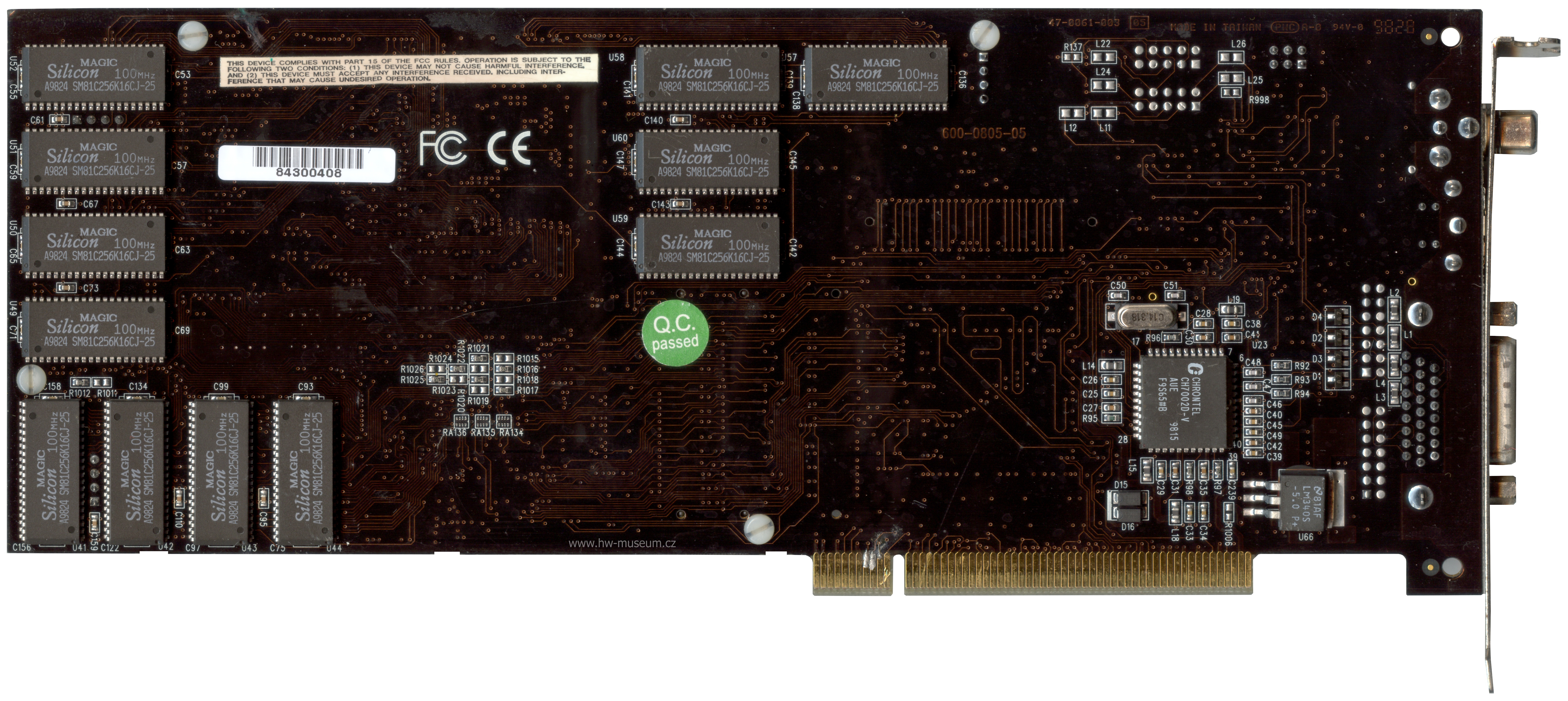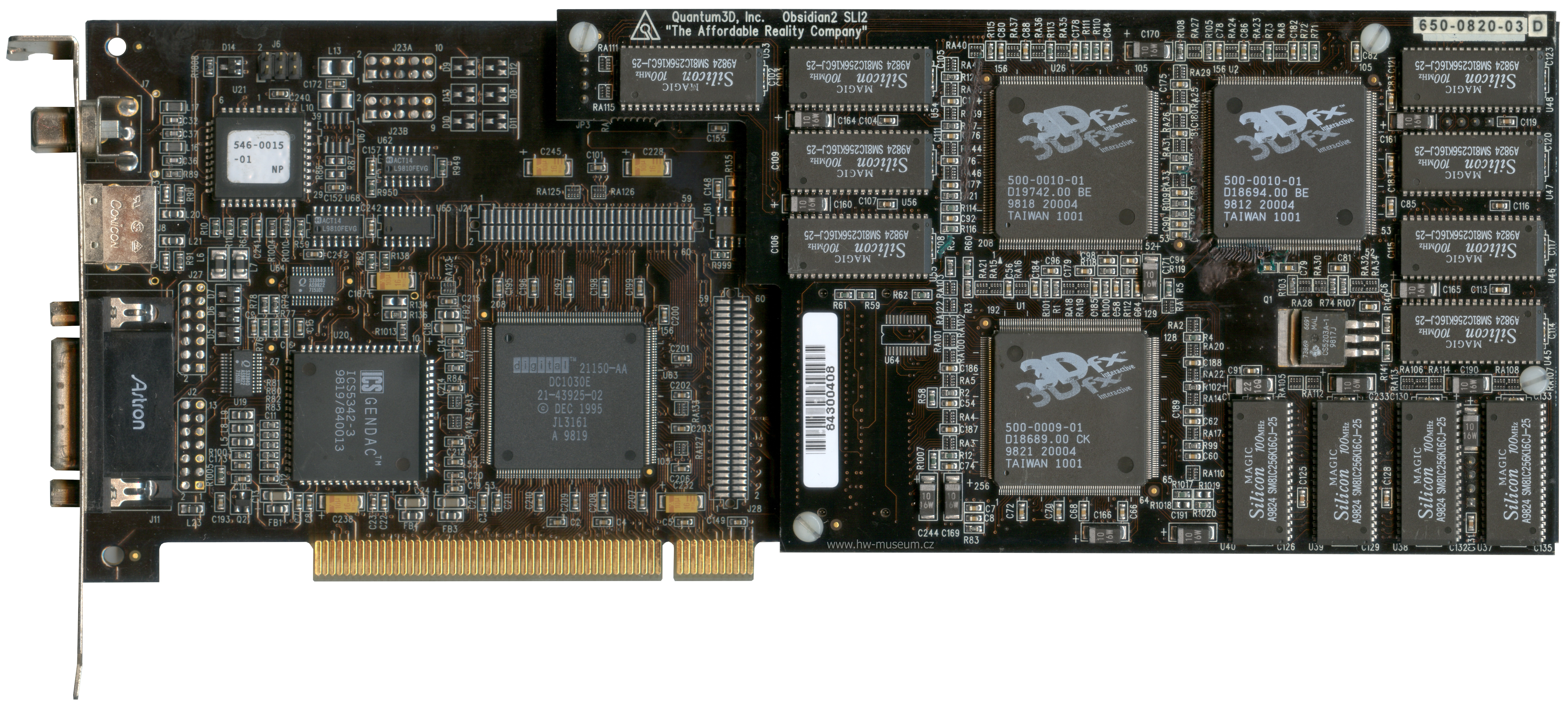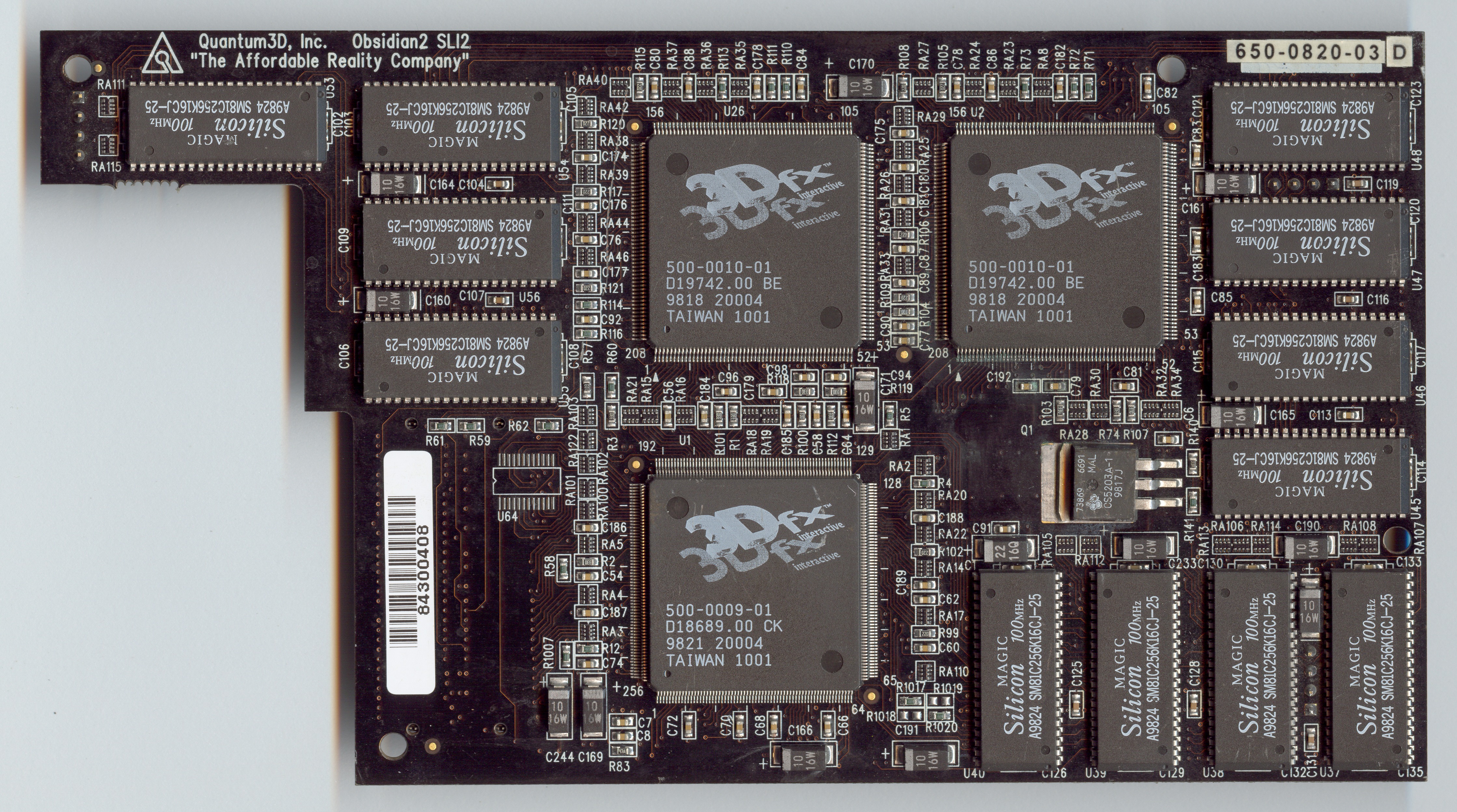 Note: Also repaired by 3dfx expert :) There were many damaged traces by corrosion near the right BE chip on the daughterboard. The chip itself was replaced too.